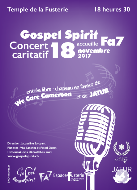 Réservez votre soirée du 18 novembre et venez nous retrouvez au temple de la Fusterie, dans les Rues-Basses, à 18h30. Nous vous préparons un magnifique concert durant lequel nous accueillerons le groupe lausannois Fa7.